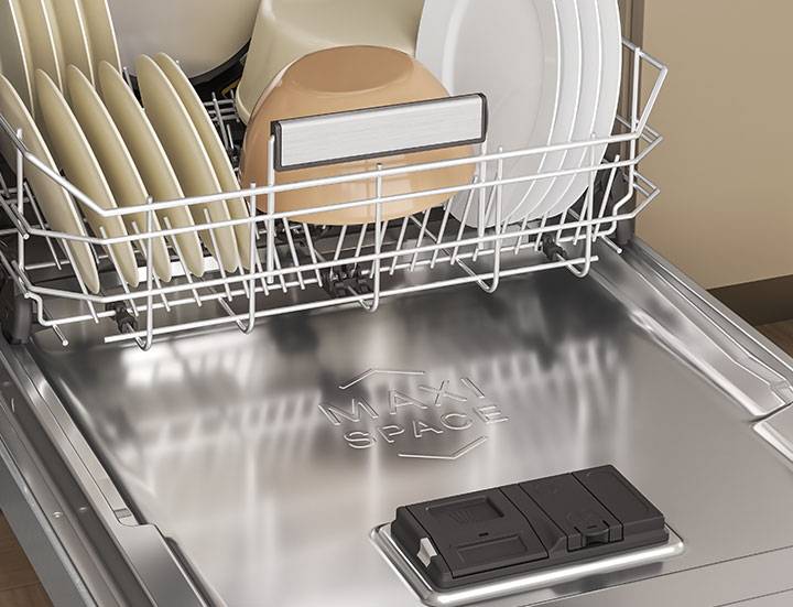 Der geräumige MaxiSpace-Innenraum bietet zudem 10%* zusätzlichen Platz, um auch große Geschirrteile wie Pizzateller unterzubringen, damit nichts in der Spüle zurückbleibt und die Küche immer ordentlich und gut organisiert ist.