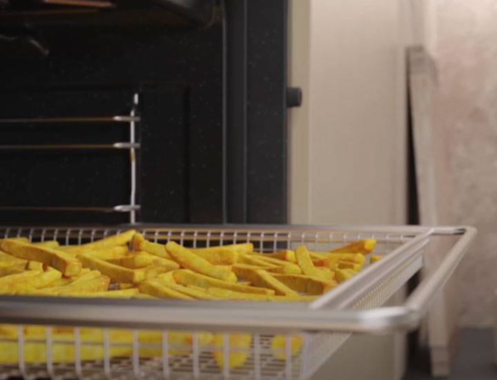 AirFry, die gesunde Kochmethode ohne Kompromisse im Geschmack - Dank heißer Umluft werden Gerichte ohne Öl schonend, gleichmäßig und knusprig auf dem speziellen AirFry-Blech gegart.